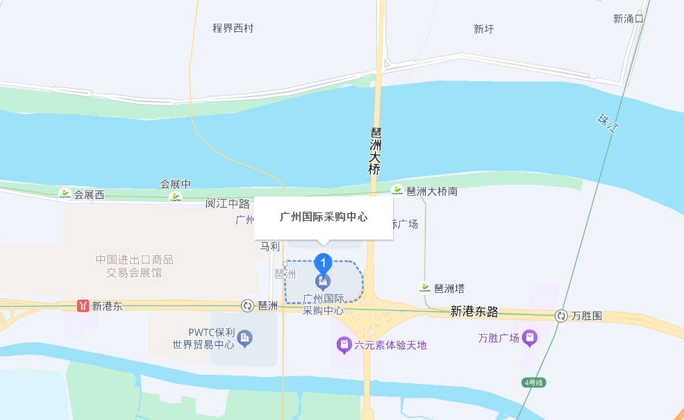廣州國際采購中心位于廣州市海珠區琶洲大道東2-8號,地處琶洲會展商圈核心位置,周邊交通便捷,臨近地鐵8號線、11號線琶洲站,周邊有華南快速干線、新港東路等主干道;同時,其緊鄰廣州國際會展中心(廣交會館)、保利世貿展館等展館,周邊還有香格里拉大酒店等五星級酒店及地鐵沿線的大型商場、影院等商業娛樂設施。